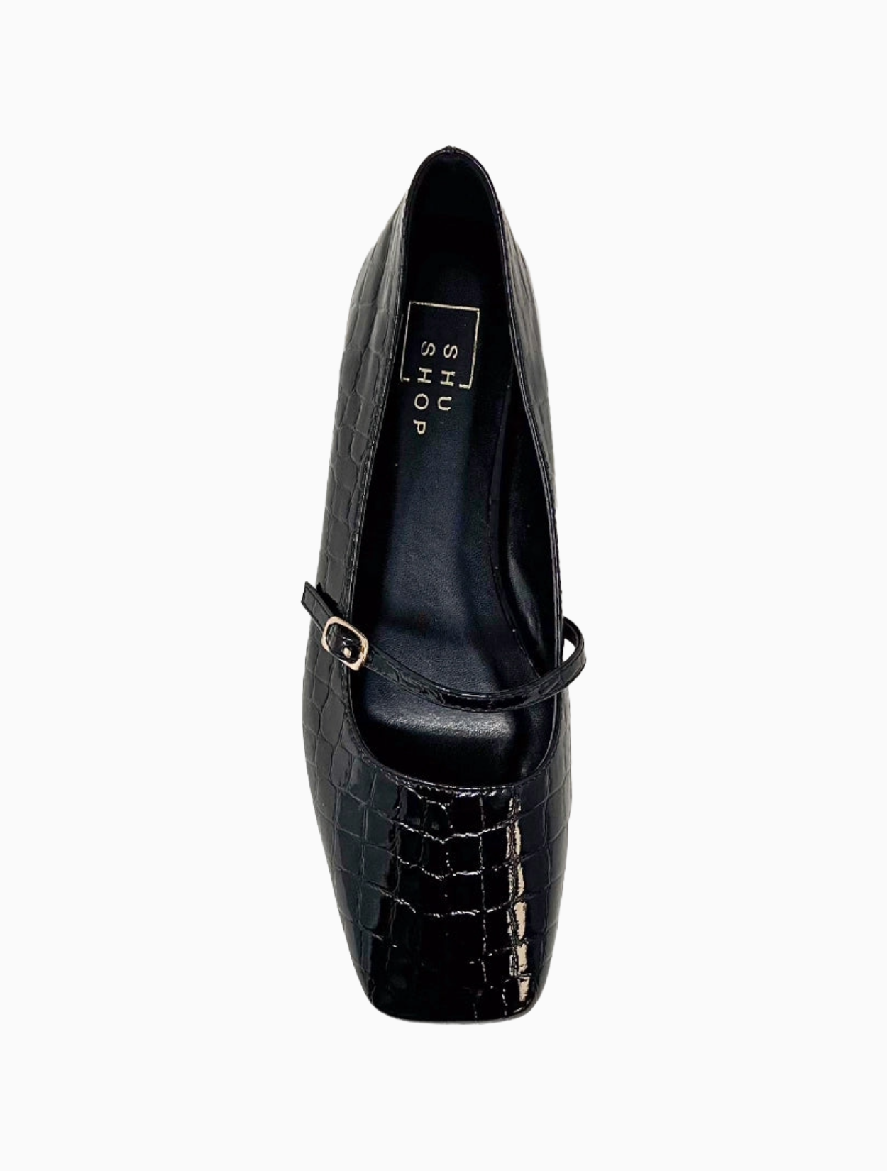 Chic meets classic in the ADELE flat, reimagined in sleek black croco. With its pointed toe, delicate Mary Jane strap, and glossy faux croc finish, this ballet flat elevates your everyday looks while keeping things effortless. Perfect for work-to-weekend wear, ADELE brings subtle drama and timeless polish in one versatile silhouette.