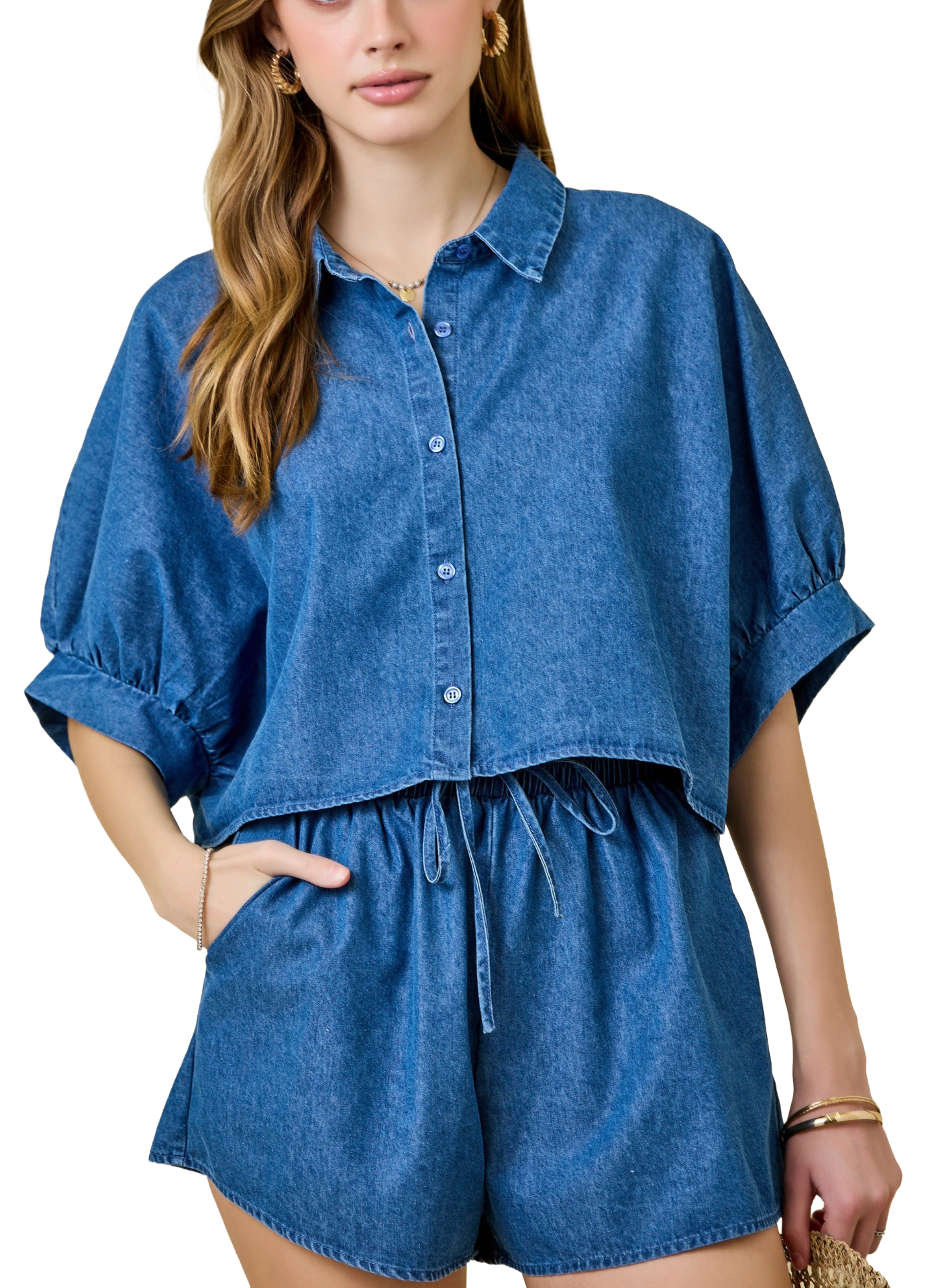 Denim Relaxed Boxer Shorts With Elastic Waistband.