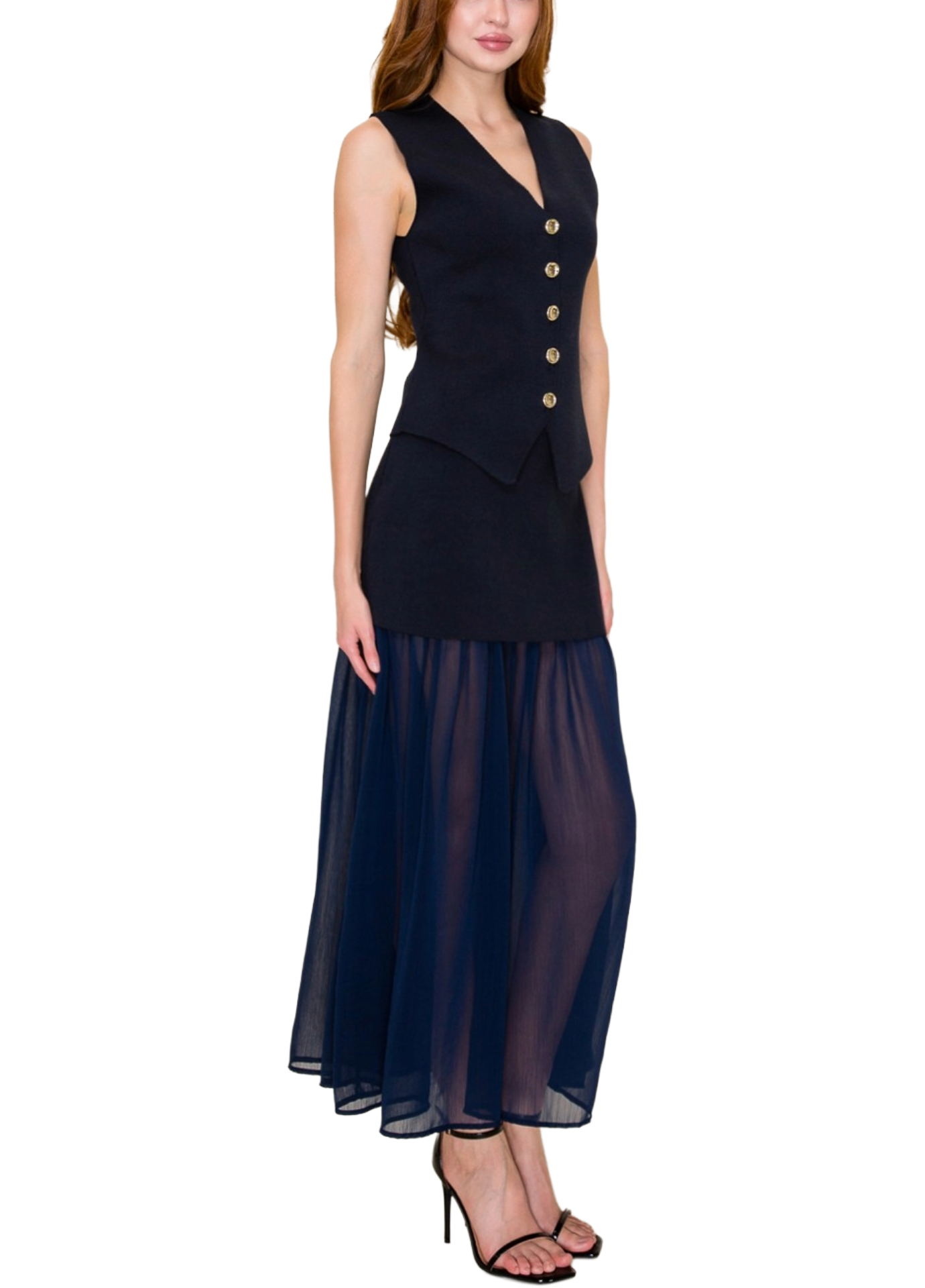 Knit V-neck Sleeveless Front Button Top.