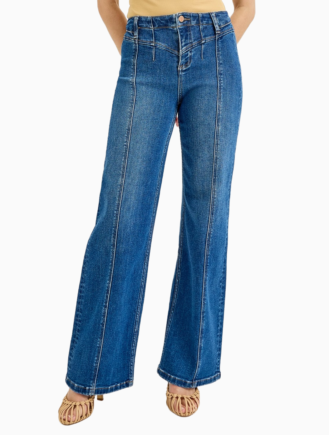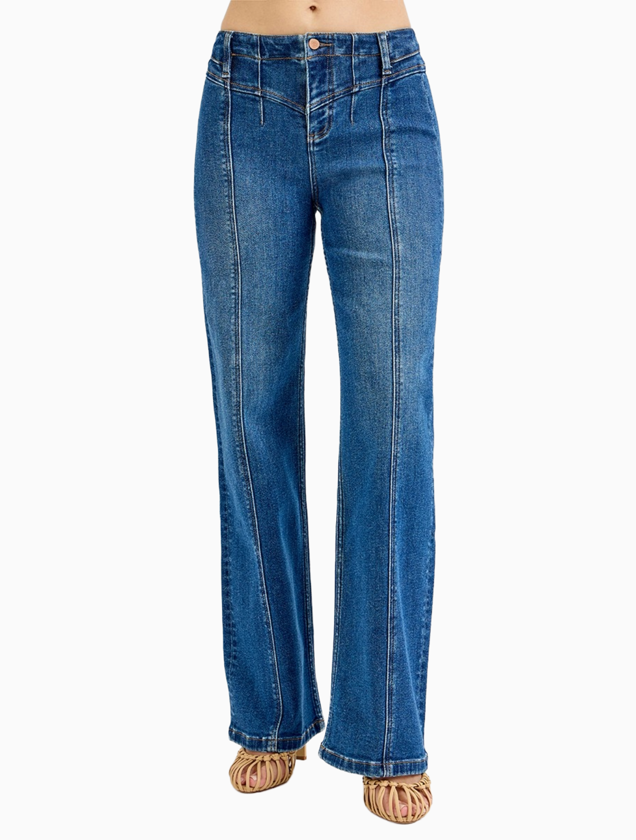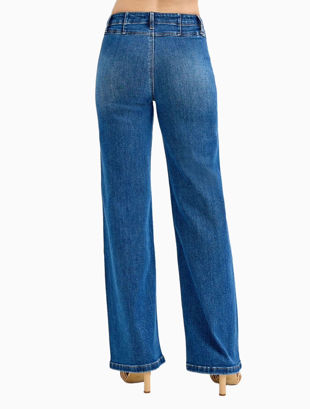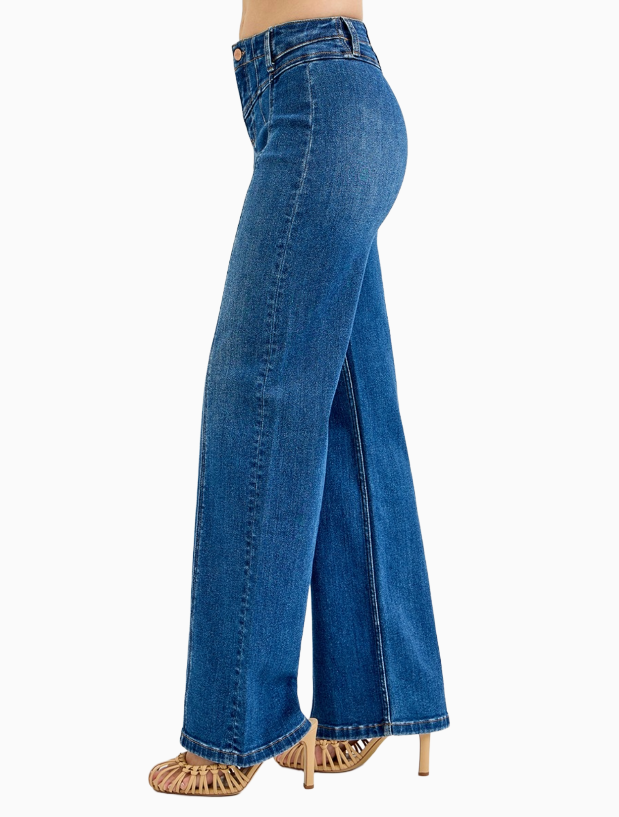 Risen Jeans High Rise Wide Leg Front Yoke Detailed Jeans.