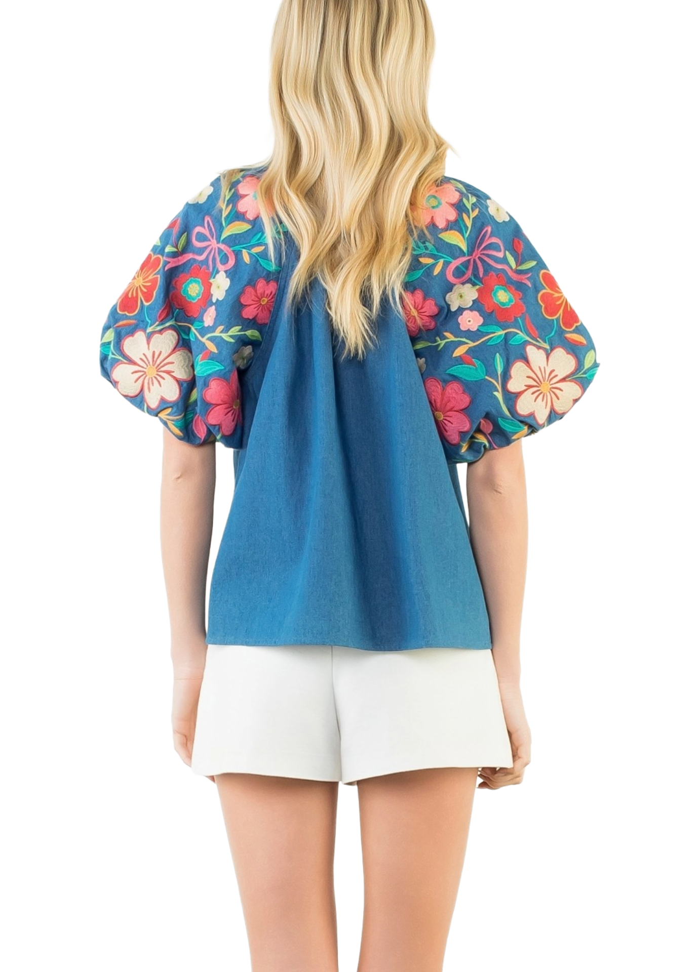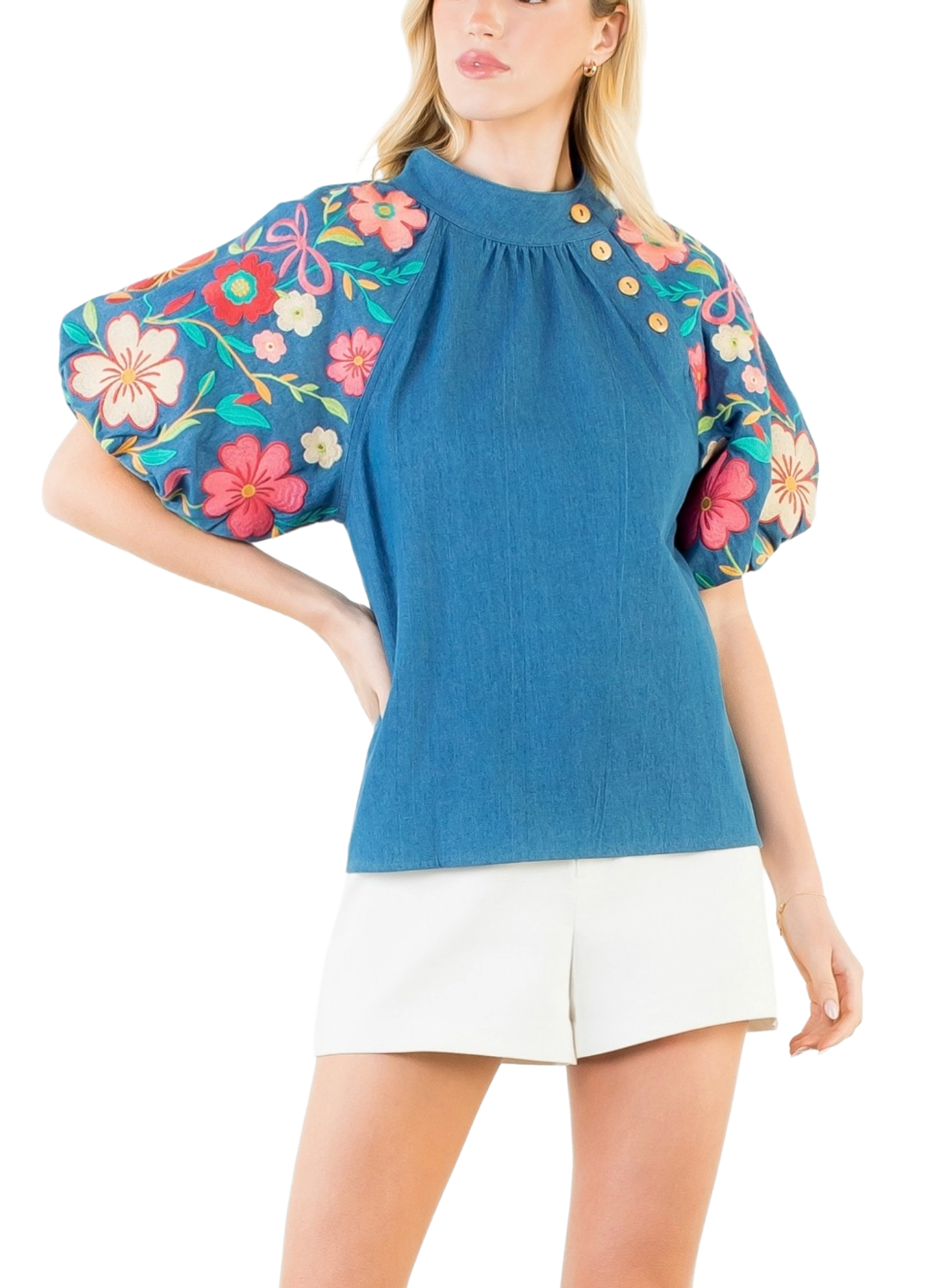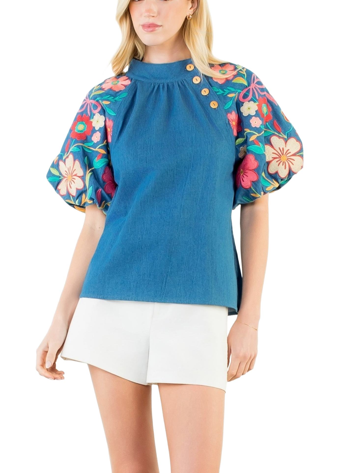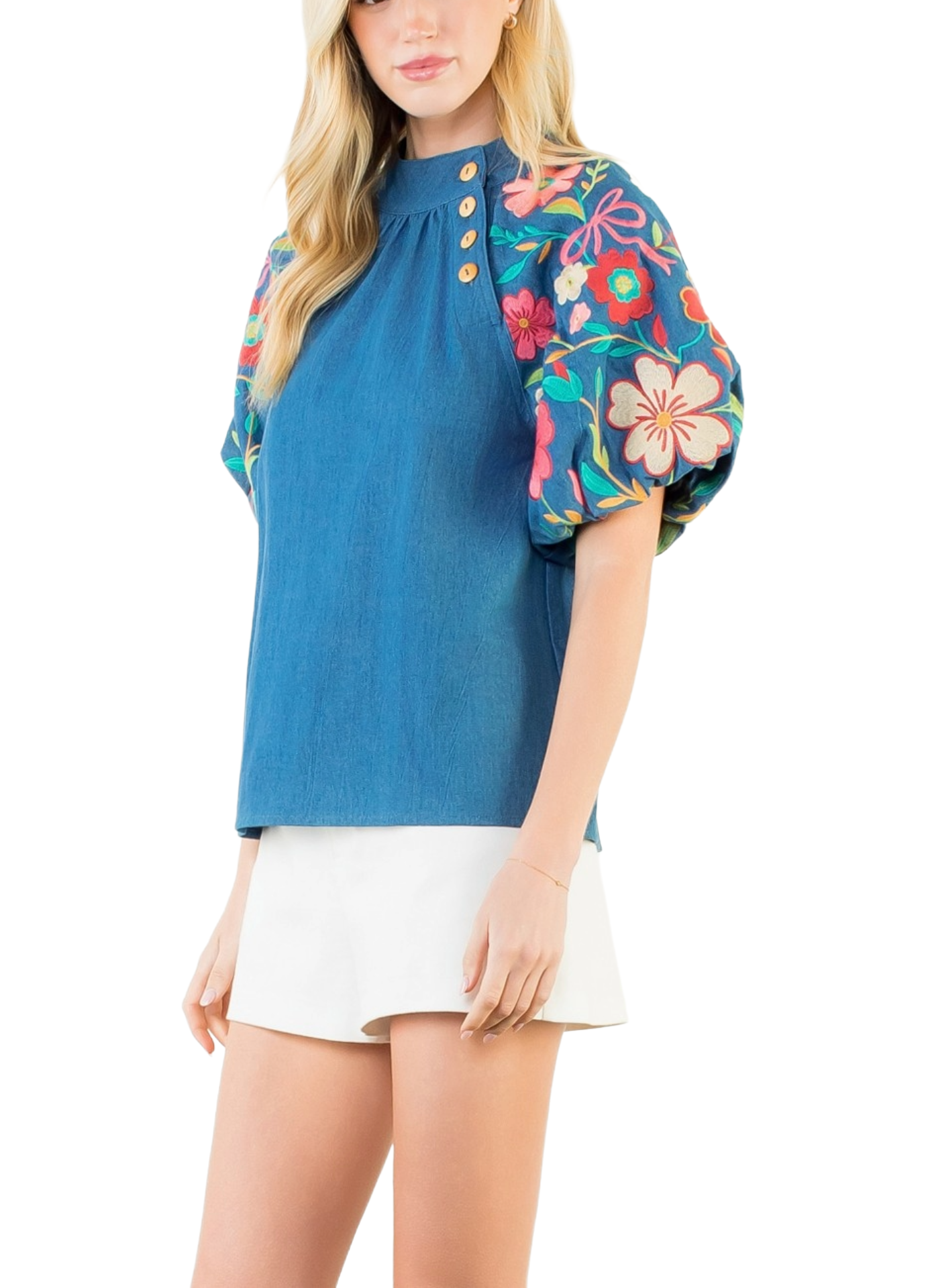 Floral Embroidery Puff Sleeve Top