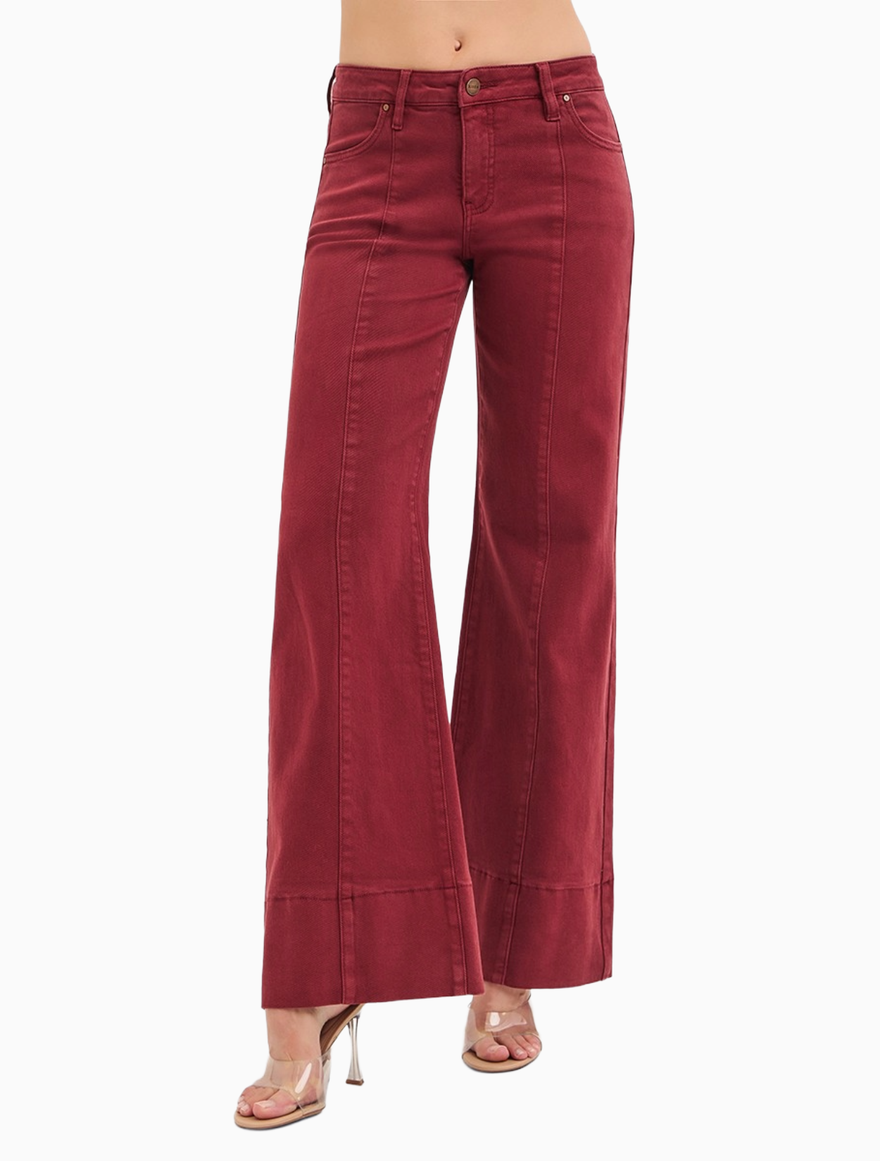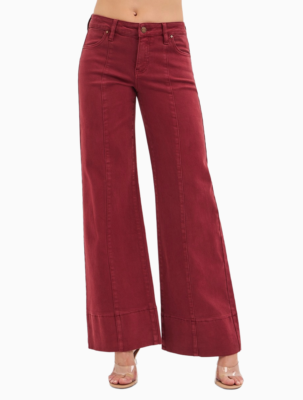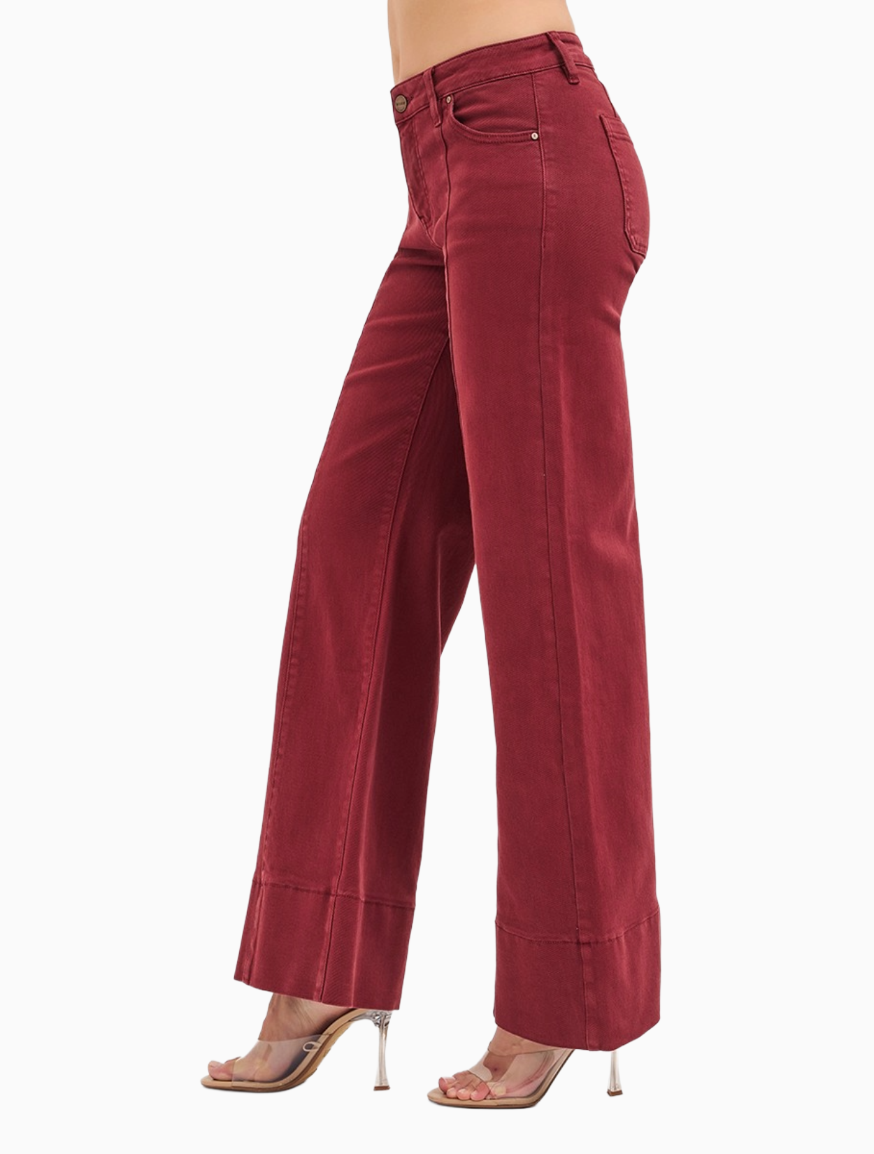 Risen Jeans Tummy Control Mid Rise Wide Leg Wide Hem.