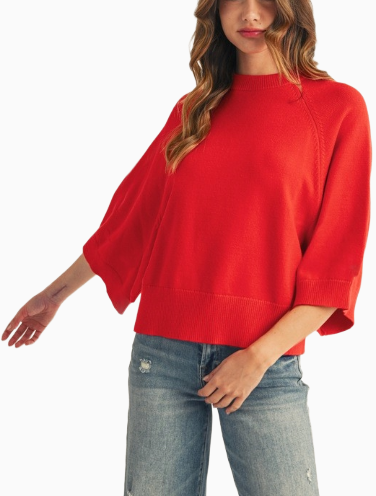 Drop shoulder soft comfy sweater top, wide sleeves.