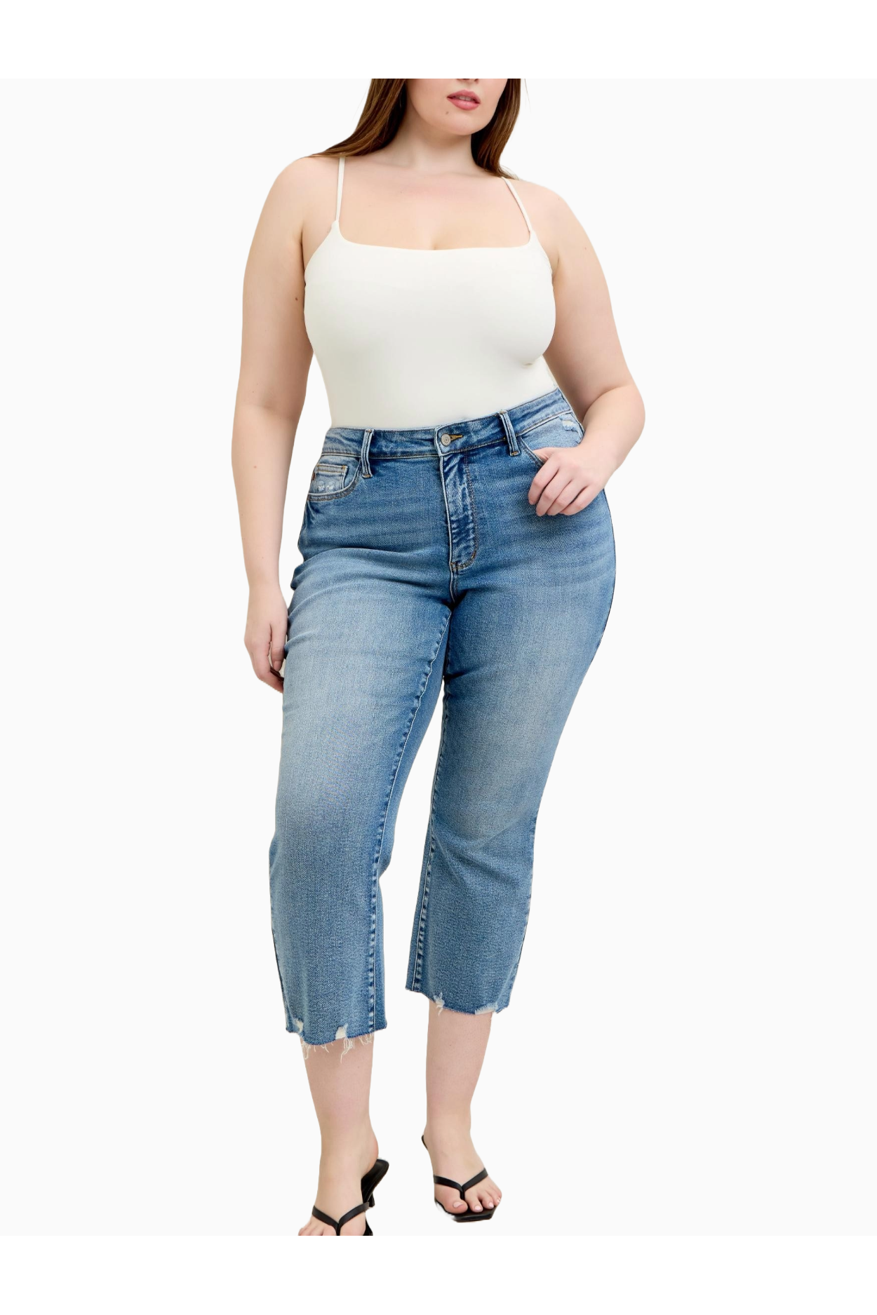 Judy Blue Plus Size Mid-rise Vintage Wash Destroy Hem Kick Flare.