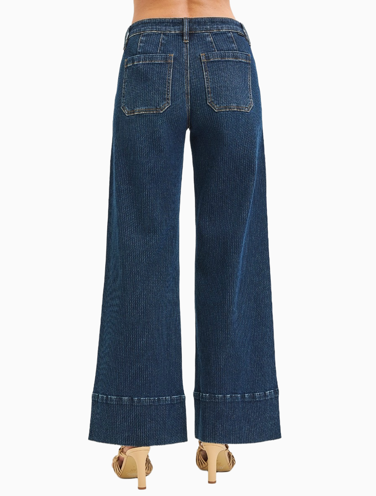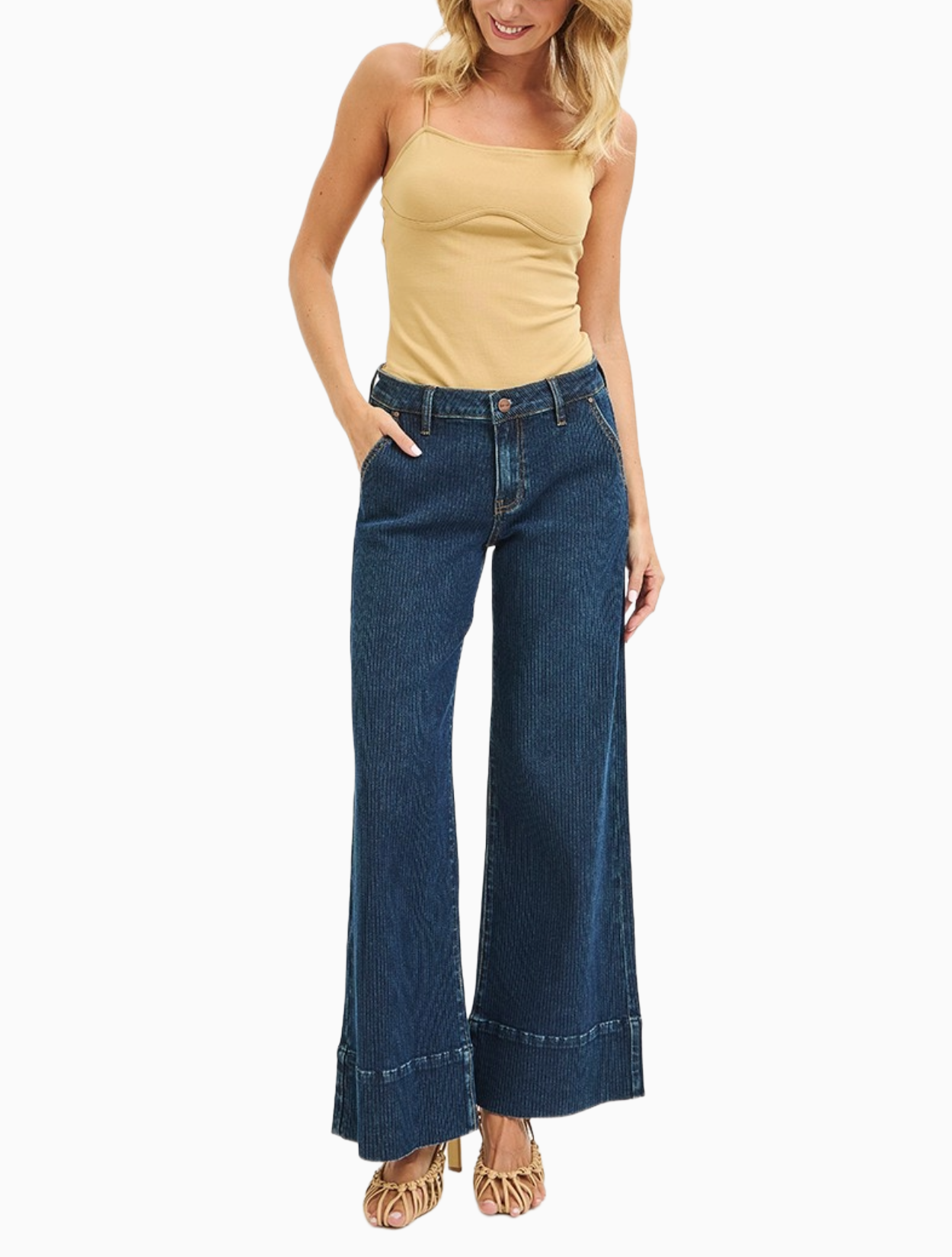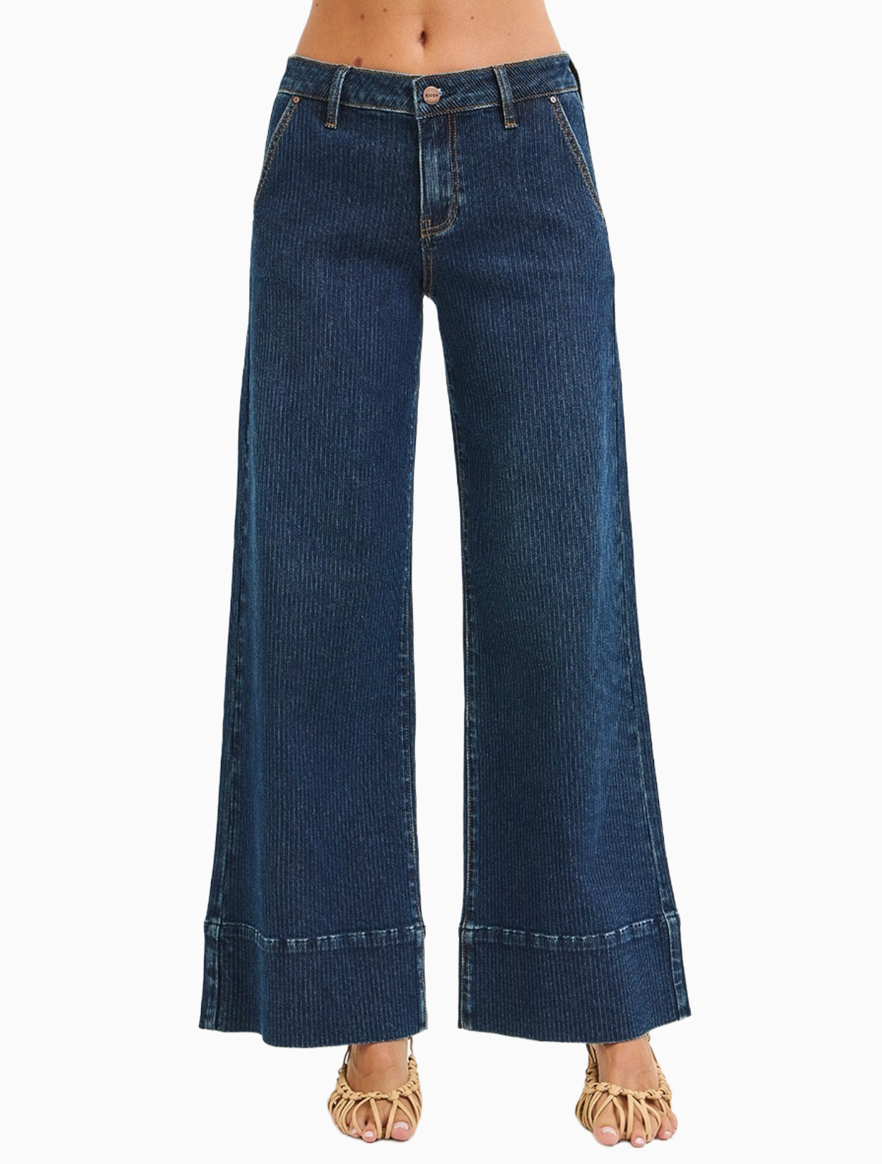 Risen Jeans Mid Rise Fit Wide Leg Wide Hem Jeans.