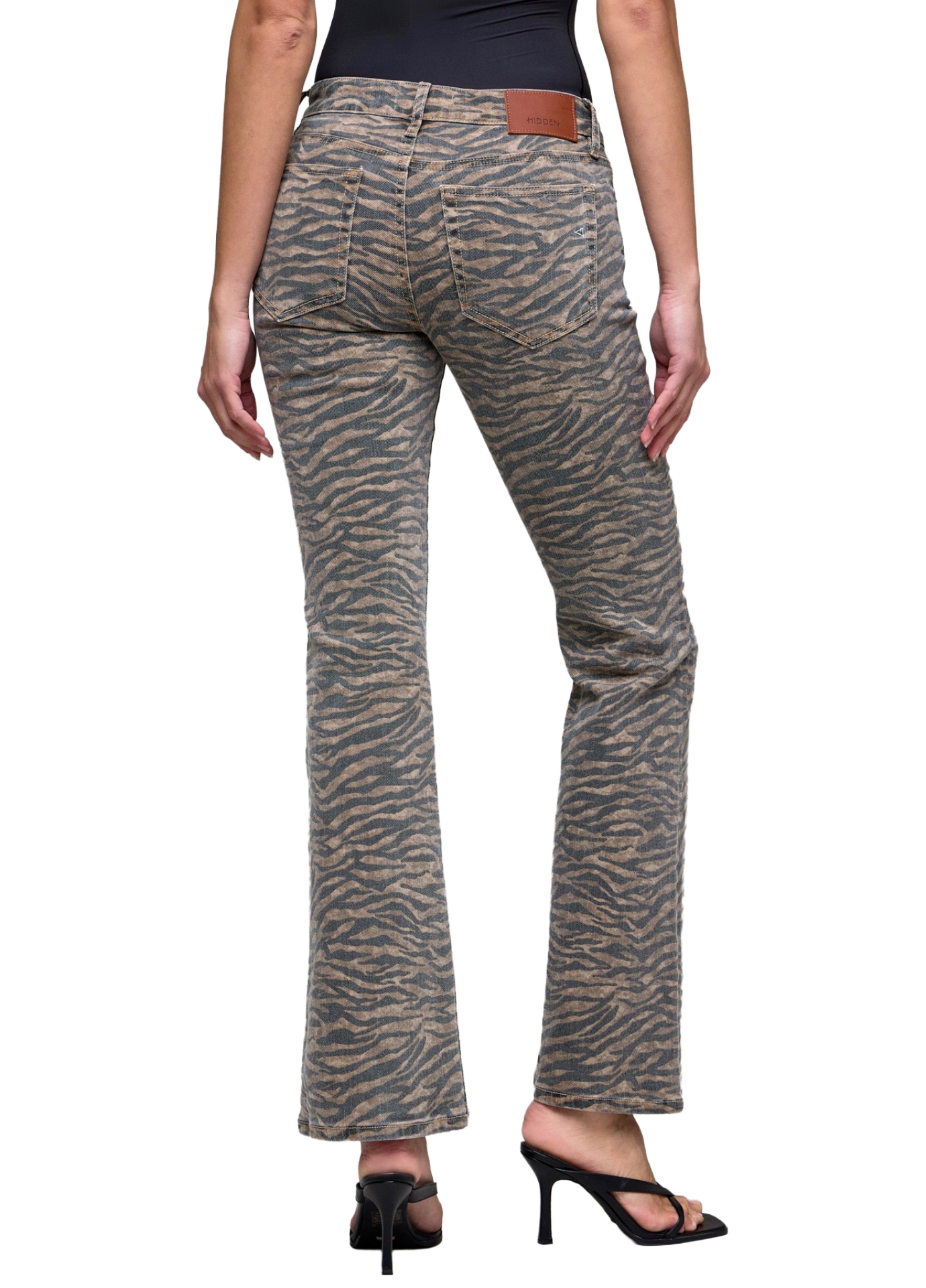 Hidden Jeans Tiger Print Low Rise 31in Inseam Bootcut Jean. 94% Cotton, 5% Poly, 1% Spandex